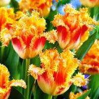 Бахромчатый тюльпан сорта Боллрум покорит всех без исключения! Его раскрывшиеся бутоны – это что-то невероятное! Количество лепестков в соцветии стандартное, но вот сами лепестки – просто фантастичны. Окрашенные в оранжево-кремовый цвет, они покоряют своей обильной бахромчатой каймой оранжево-карминового окраса. На первый взгляд может показаться, что соцветия Боллрум хрупкие и уязвимые. На самом же деле все наоборот.