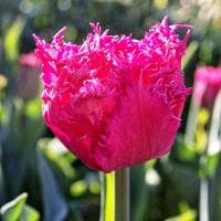 Тюльпан дабл-бахромчатый Кингстоун — многолетнее луковичное растение с необычными завораживающими цветками.Множество красно-малиновых лепестков с красивой изящной бахромой образуют шикарный восхитительный бокал. Тюльпан Кингстон широко используют как для озеленения и украшения клумб, так и для букетов.