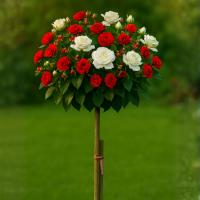 Роза штамбовая Скарлет/Эдельвейс